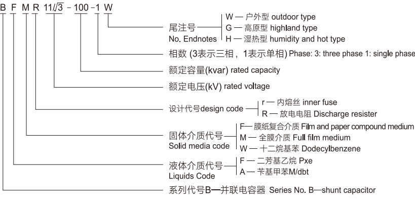 | Model BAM | Rated Voltage (kV) | Rated Output (kVAr) | Rated Capacitance(uF) | Rated Current In(A) |