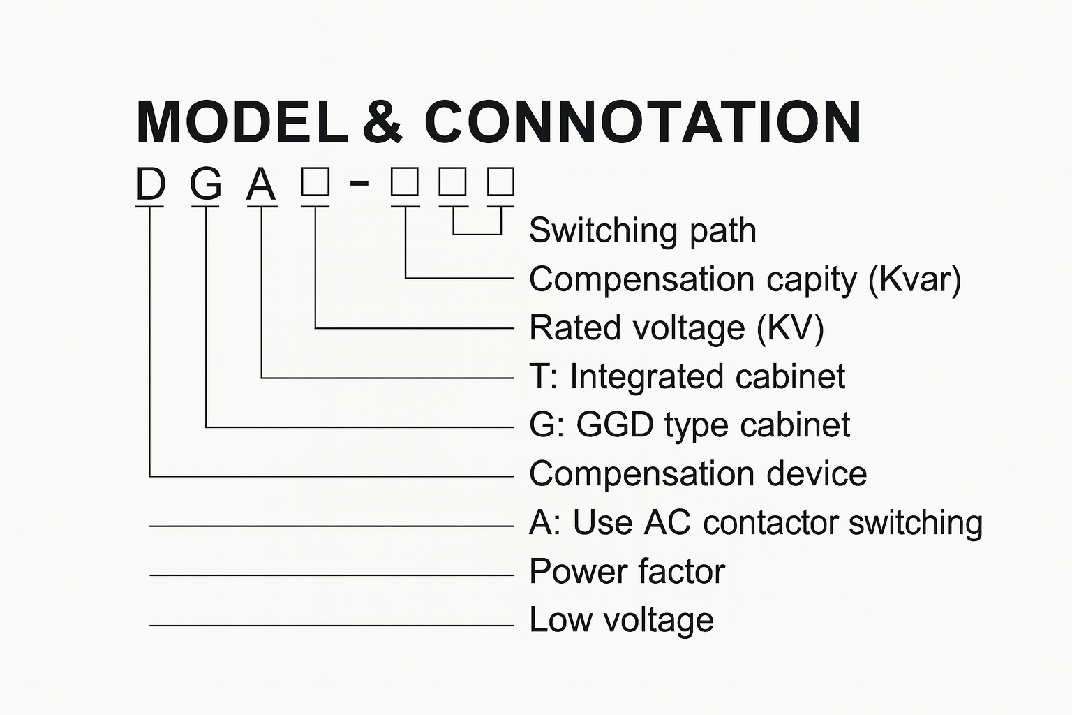 The DGAC0.4 Series Intelligent Reactive Power Compensation Device is designed for low-voltage power distribution systems (AC 380 V, 50/60 Hz) to improve power factor, reduce line losses, and enhance voltage stability.