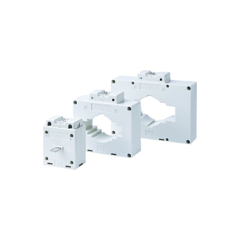 This model is a plastic-encased current transformer, widely used in low-voltage switchgear assemblies. It supports both busbar and base plate mounting and is suitable for installation in any direction. The primary conductor can be either a busbar or a cable.